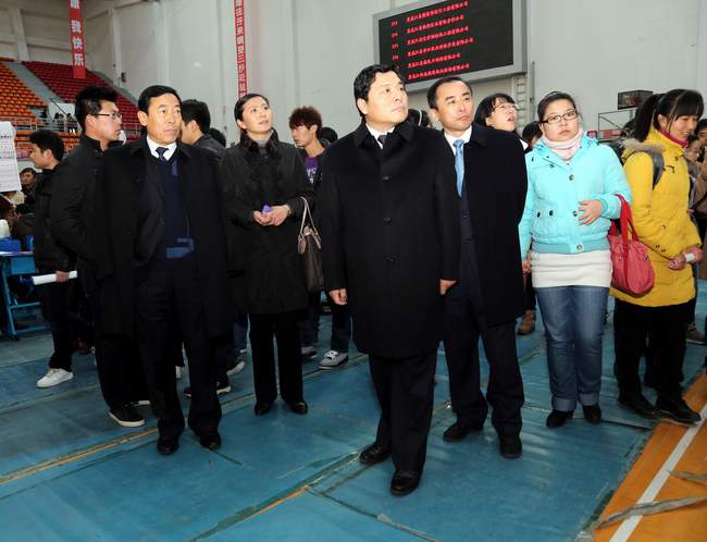 11月24日上午,学校在体育馆举行2013届毕业生供需见面会,335家用人单位提供5000多个招聘岗位,4000多名毕业生入场寻找就业机会。校党委书记李佐同、副书记杨颗粒、副校长王金满、纪委书记李伟凯亲临现场,了解用人单位情况和学生需求。招生就业处全体人员、各学院领导及分团委辅导员也都来到招聘会现场,帮助推荐学生,解答相关问题。